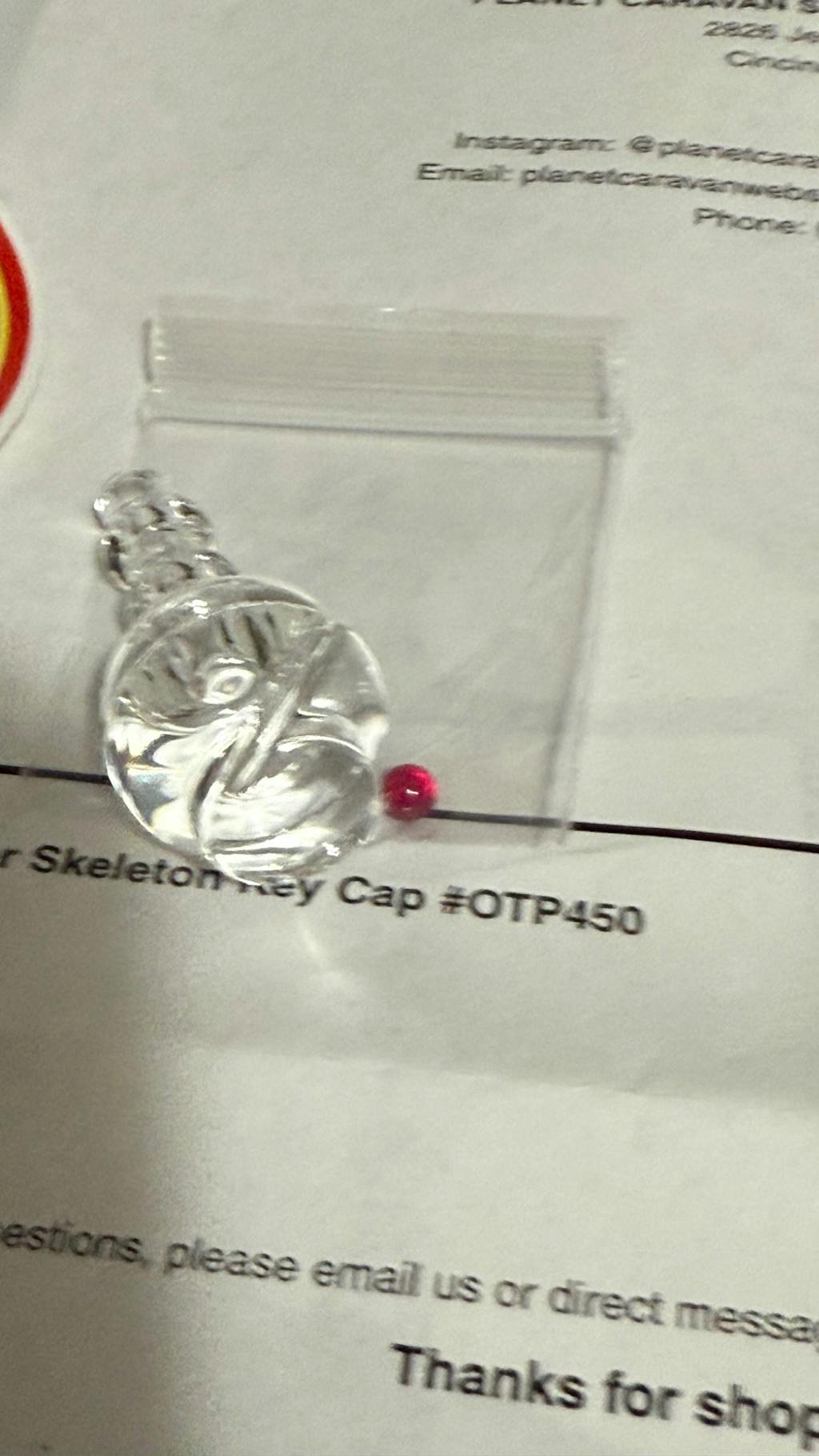 RegularGrower Planet caravan had this package to me in two days. I love that about them. As far as the skeleton key goes, it works well. It works as intended. OTP has quality glass that functions well. The spinner side sits in the bowl of the chamber like a Quartz Marble not like a pivot top. Be aware of that. Otherwise it is versatile and that’s what I wanted. A bit of both.